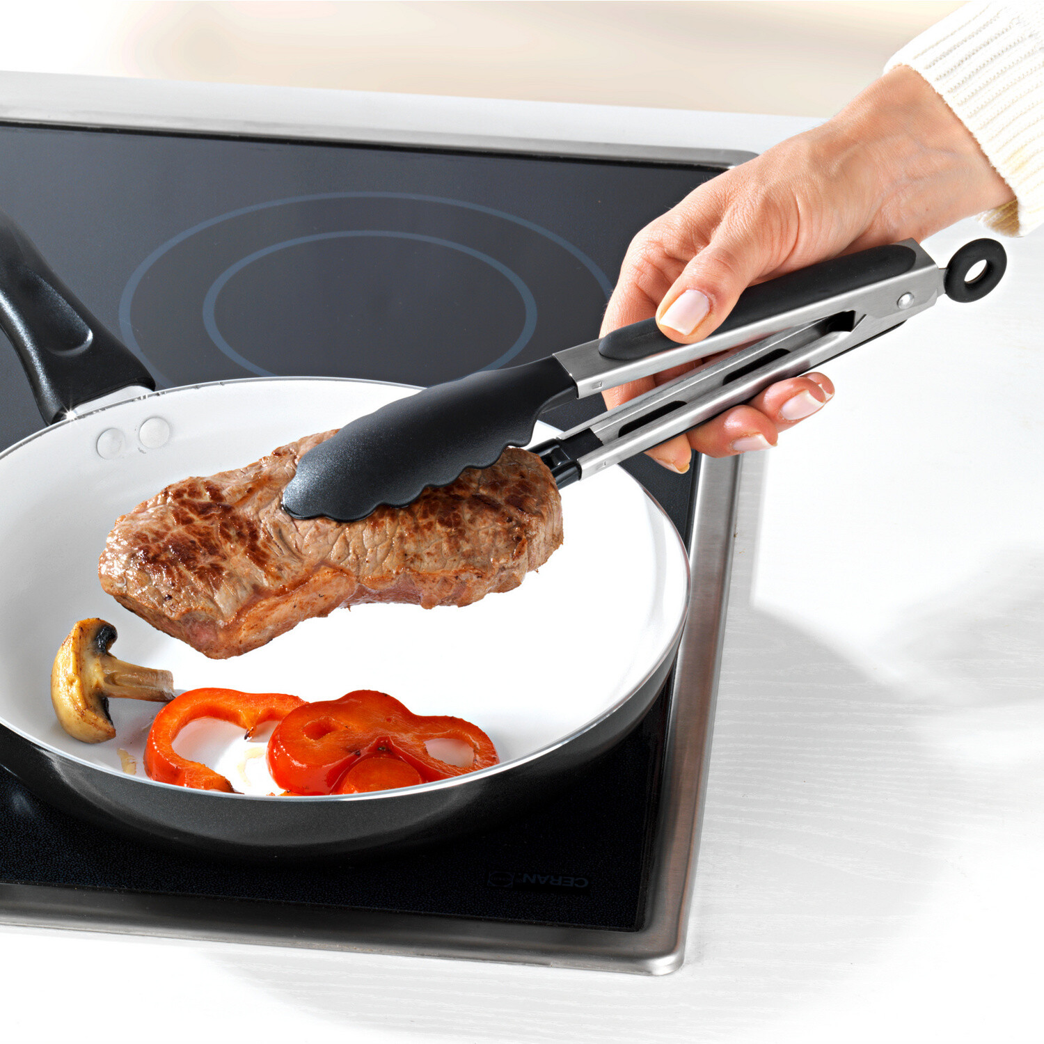 Rukoväť: ušľachtilá oceľ so silikónovým povrchom.