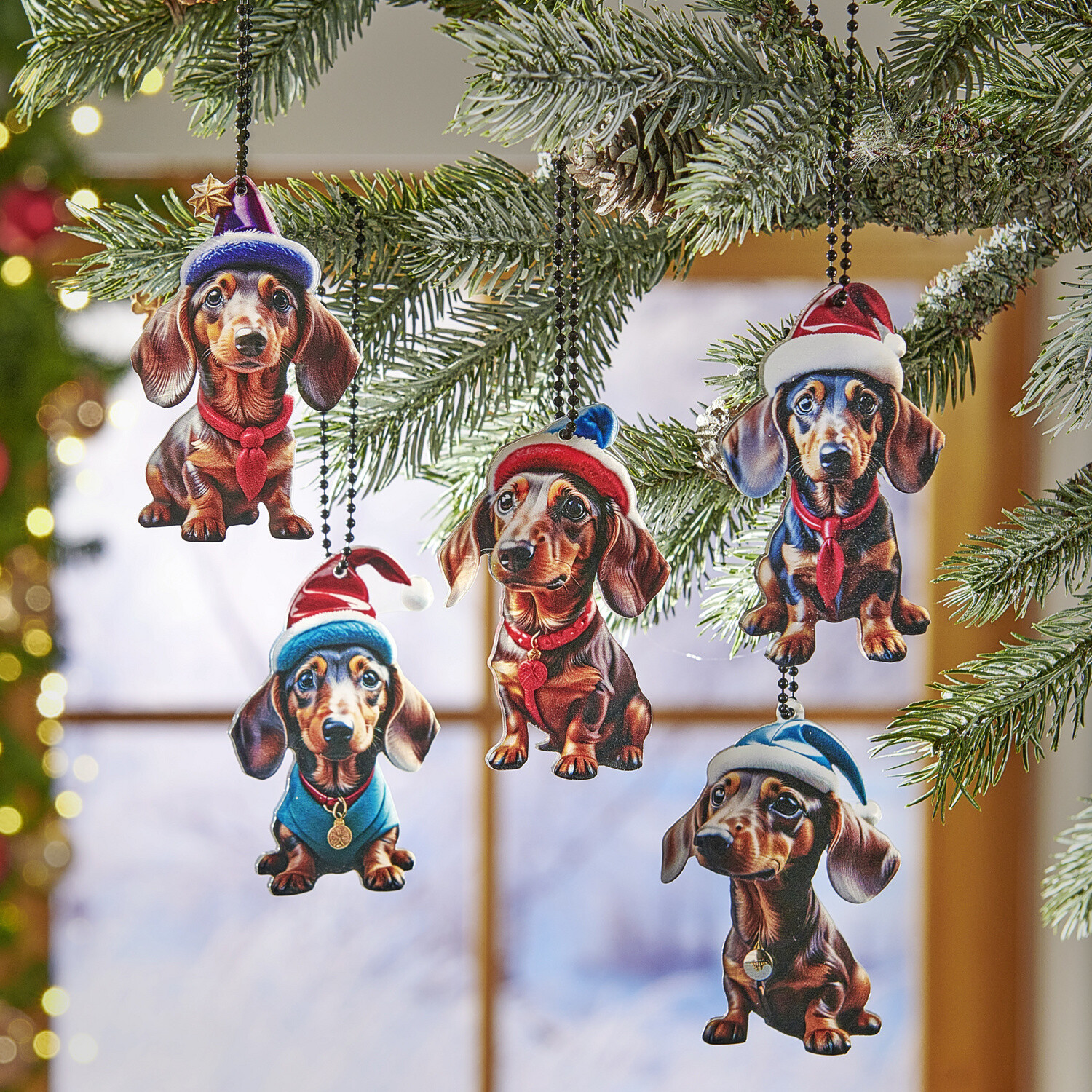 Títo roztomilí jazvečíci so sklopenými uškami a vianočnými čiapočkami upútajú pozornosť na každom stromčeku alebo adventnej výzdobe. Ľahko sa zavesia pomocou retiazky.
