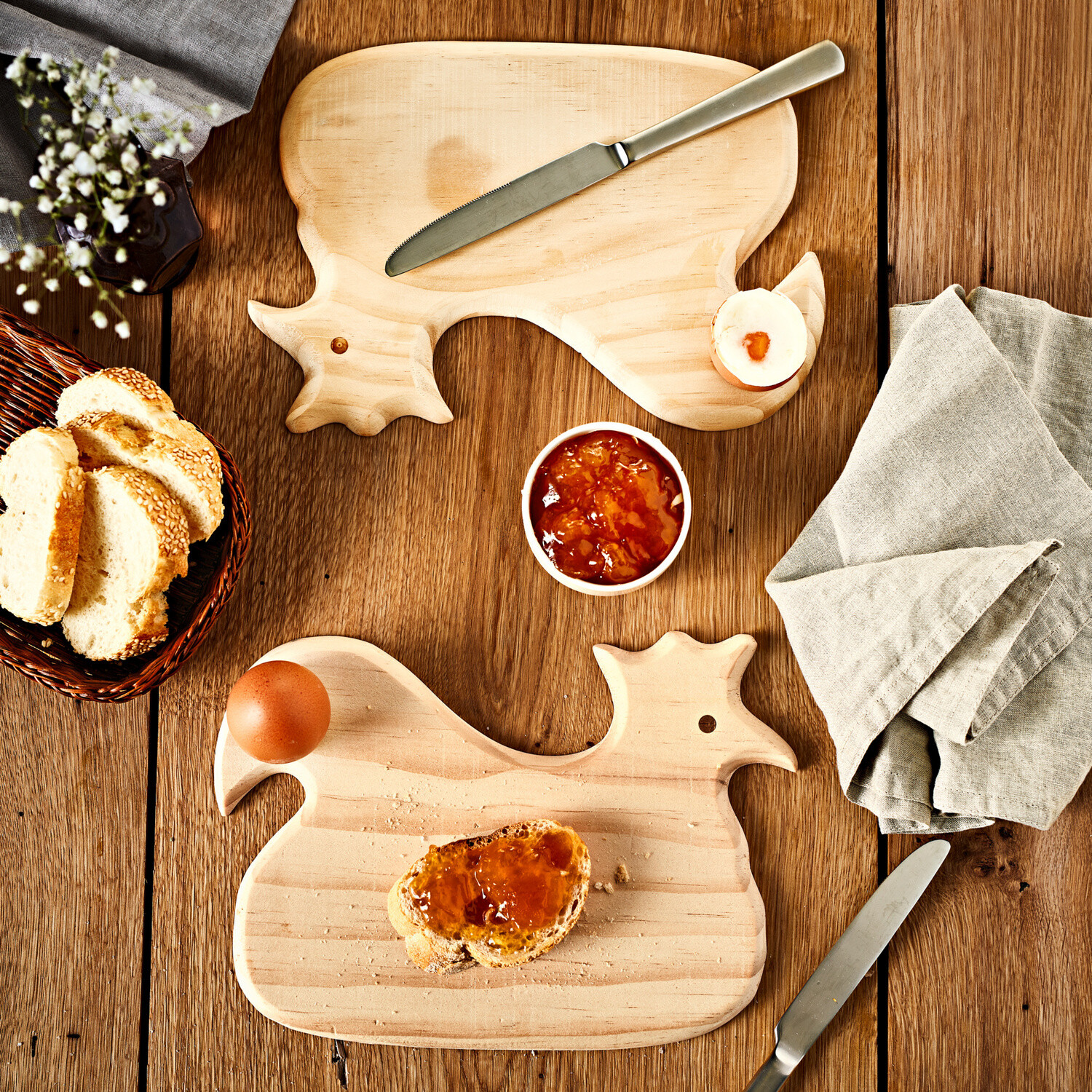 Táto drevená doštička má dokonca svoje miesto pre raňajkové vajíčko.