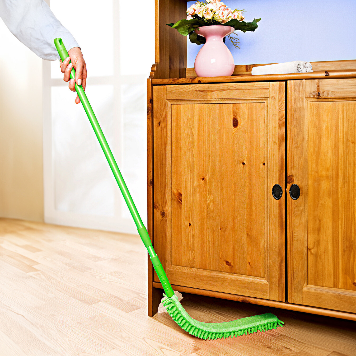 Kde prachovka a utierka na prach zlyhajú, je čistiaci mop neporaziteľný. Extra plochý, šikovne sa dostane do všetkých kútov a škár, pod skrine, za radiátor atď. Jeho poťah z mikrovlákna magicky pritiahne prach, žmolky a vlasy a zadrží ich. Možno použiť namokro aj nasucho. Poťah je odnímateľný.