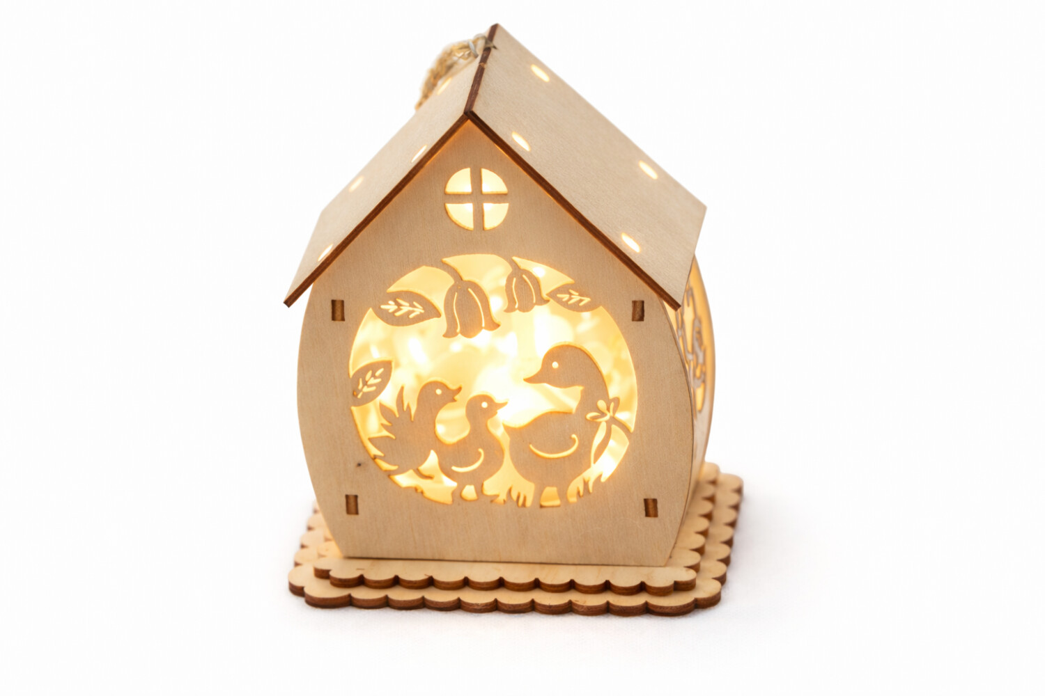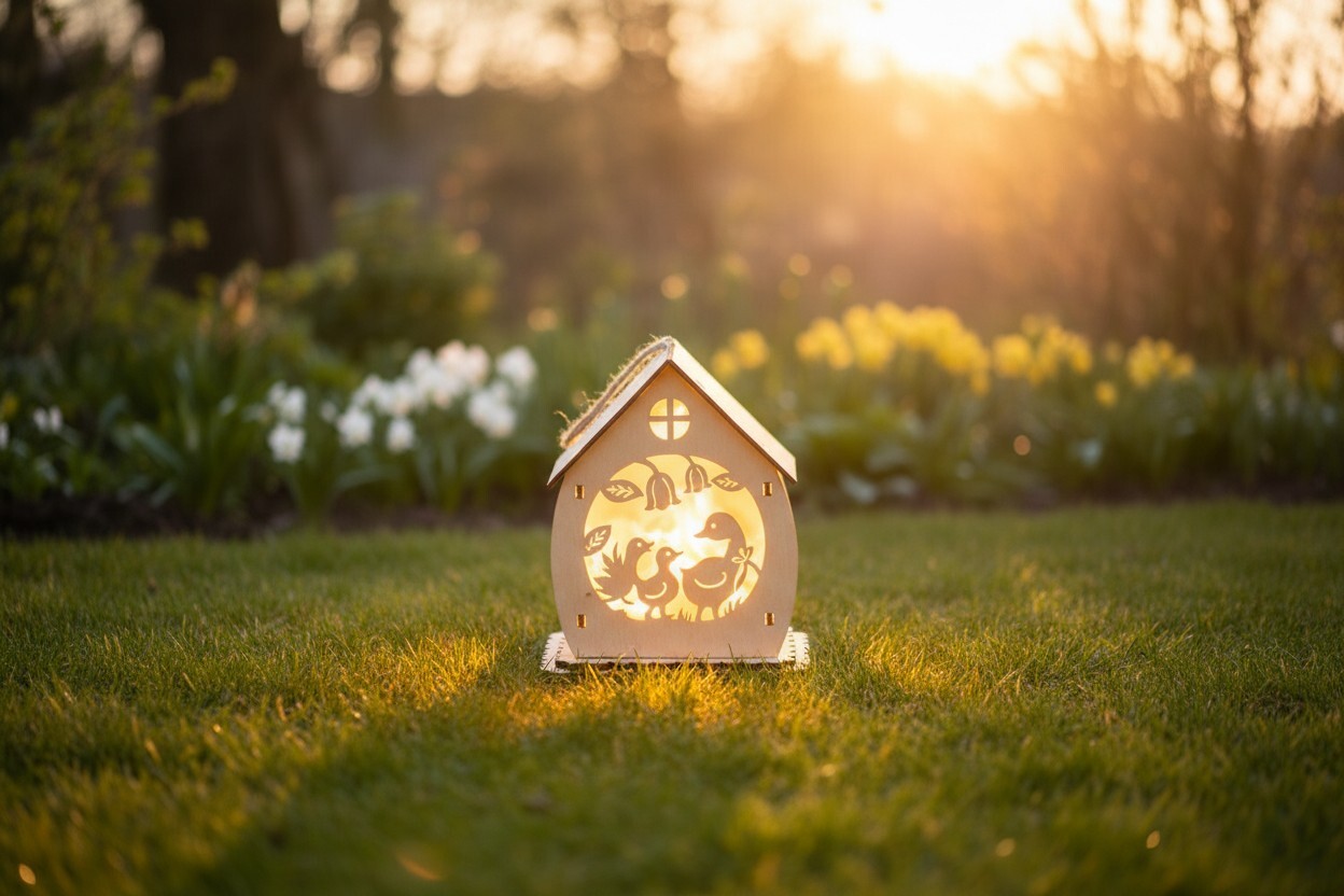 Svetelné dekorácie nie sú len doménou Vianoc. Domček s vyrezávaným jarným motívom sa skvele hodí aj na Veľkú noc a v iné ročné obdobie. Dekoráciu stačí iba zavesiť do okna, na stenu alebo len tak postaviť na parapet či poličku. Teplá farba svetla navodí útulnú a nevšednú atmosféru. Zabudované LED diódy sú veľmi úsporné a majú príjemnú a dlhú svietivosť. Ich nežné svetlo presvieti jemne vyrezávanú dekoráciu v krásnom efektu. Vďaka napájaniu z batérie nie ste obmedzovaný prístupom k el. zásuvke a dekoráciu tak môžete umiestniť kdekoľvek. Pristane rozhodne aj balkónom, terasám a záhradám. Napájanie 2 x LR44 batérie, ktoré nie sú súčasťou balenia.