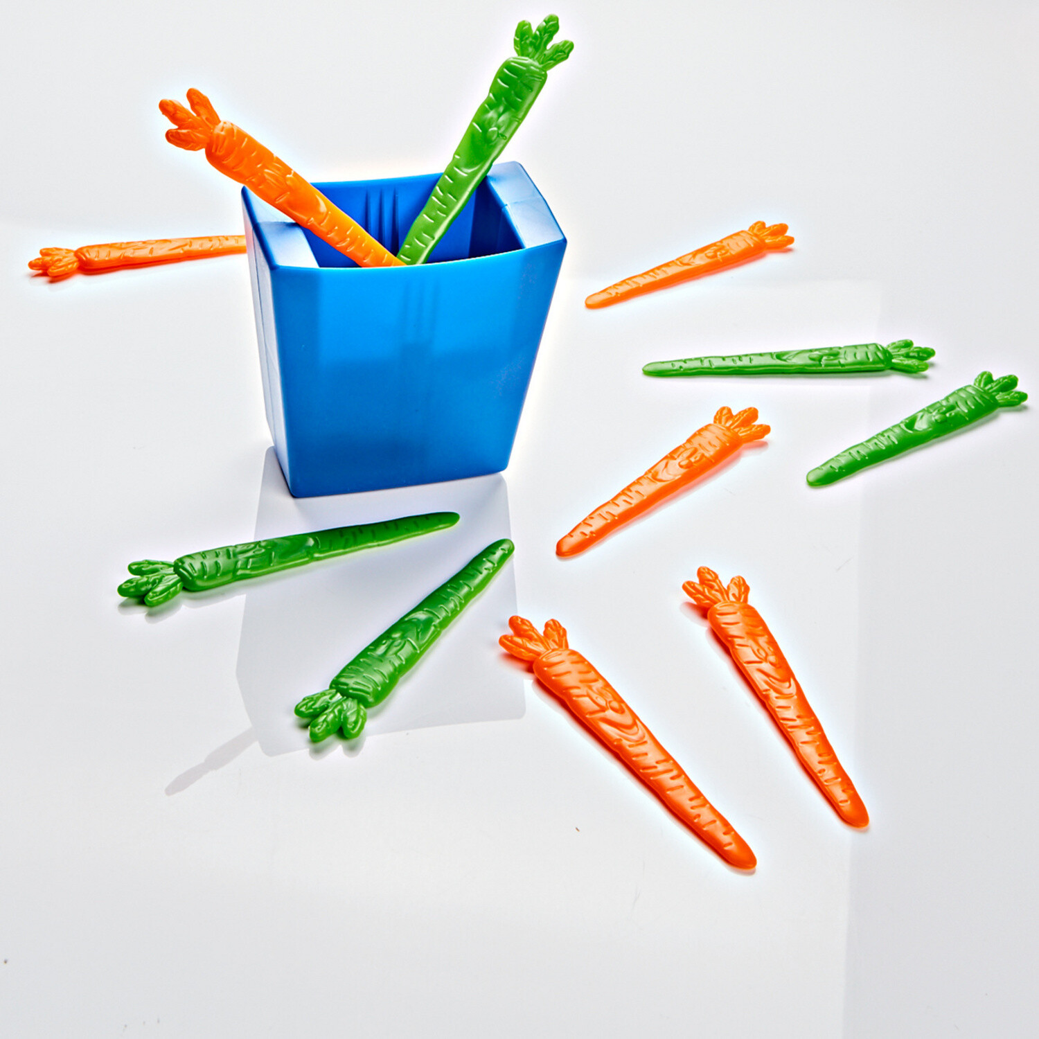K vtipným pozdravom od veľkonočného zajačika: 3 perá s čiernou náplňou v originálnom vzhľade mrkvy. Na písanie, kreslenie a ako darček. S ochranným viečkom. Vymeniteľná náplň.