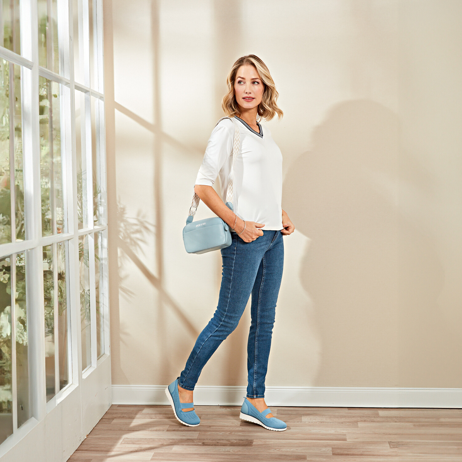 Noste crossbody a majte voľné ruky! Módna kabelka cez rameno v krásnych pastelových farbách s 2 nastaviteľnými popruhmi: hladká a v kombinácii vzorov - jednoducho ju vymeňte podľa outfitu. Kompaktná a prekvapivo priestranná s 2 hlavnými priehradkami na zips.