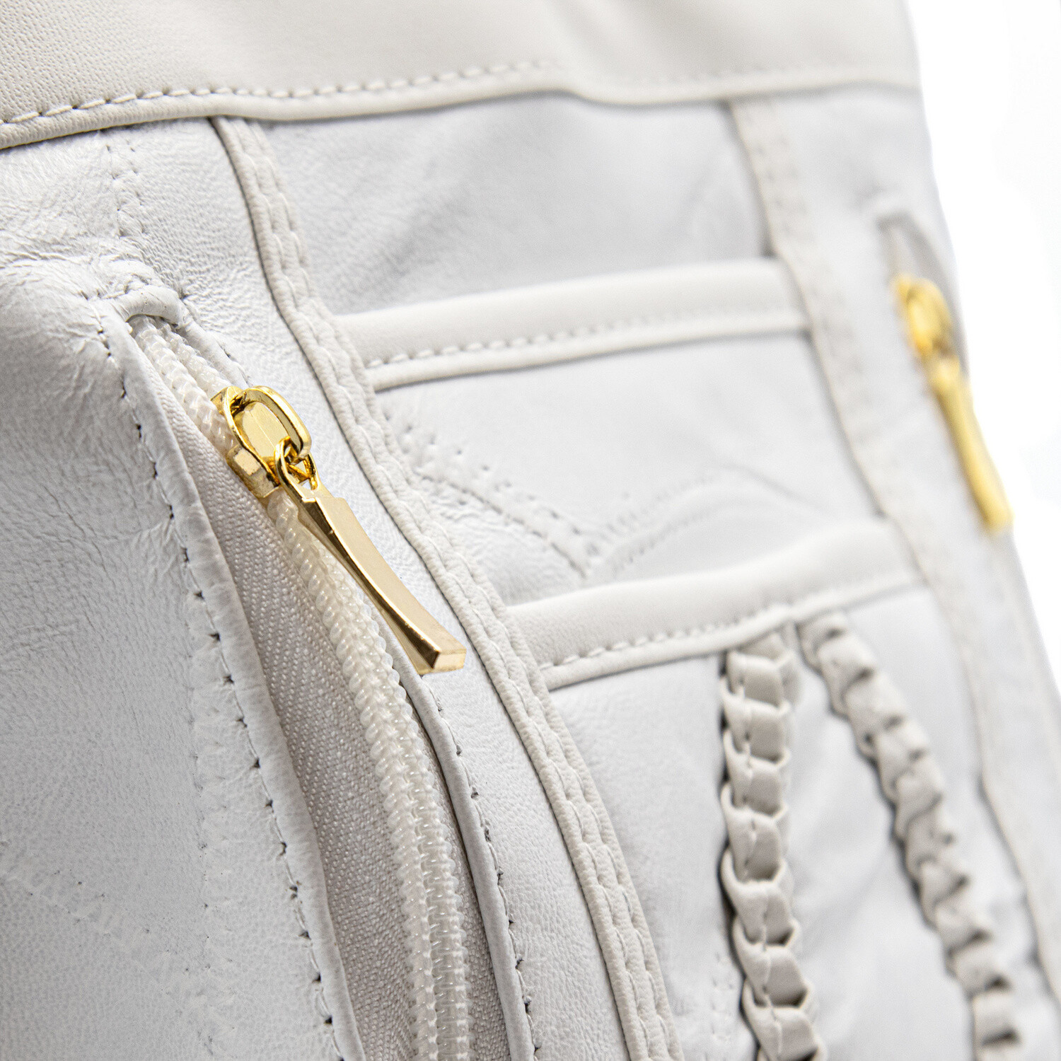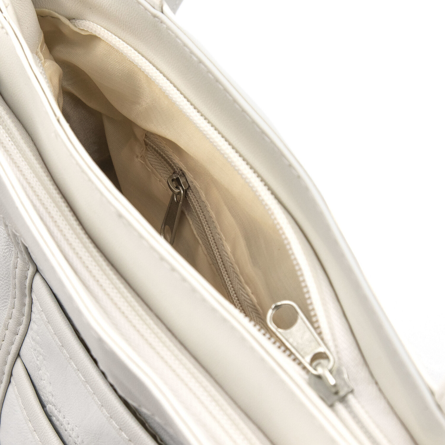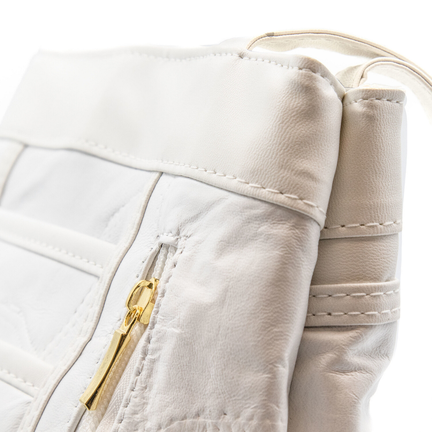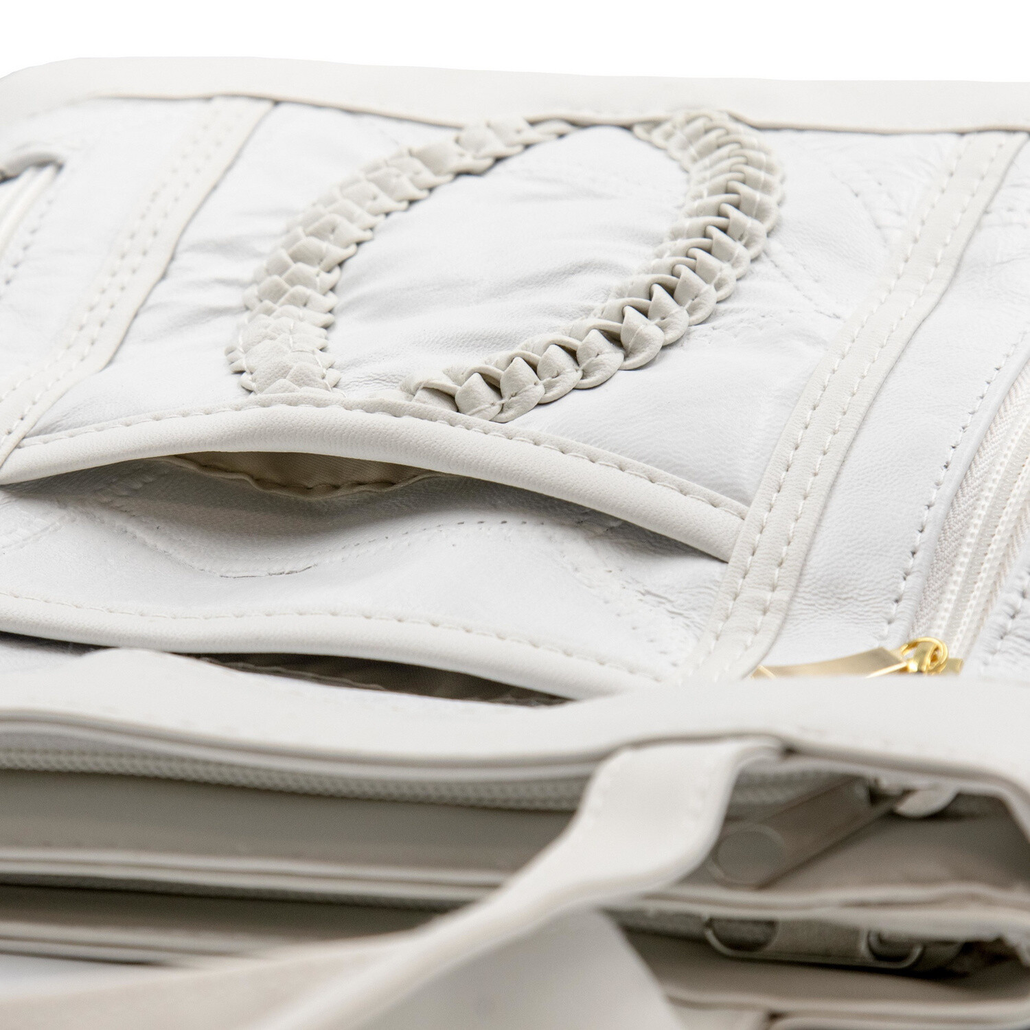Kožená kabelka cez plece v patchworkovom štýle. S 2 objemnými vreckami a 5 praktickými vonkajšími vreckami pre perfektný poriadok. Vnútri 1 vrecko na zips. Popruhy cez plece v dĺžke 60 cm.