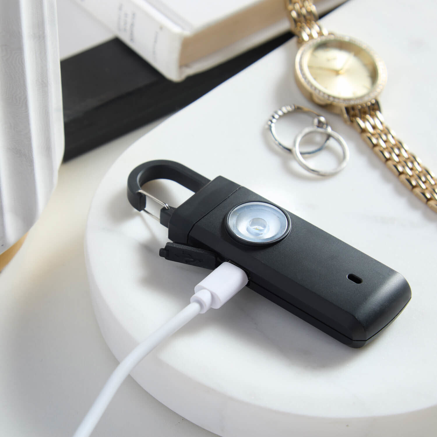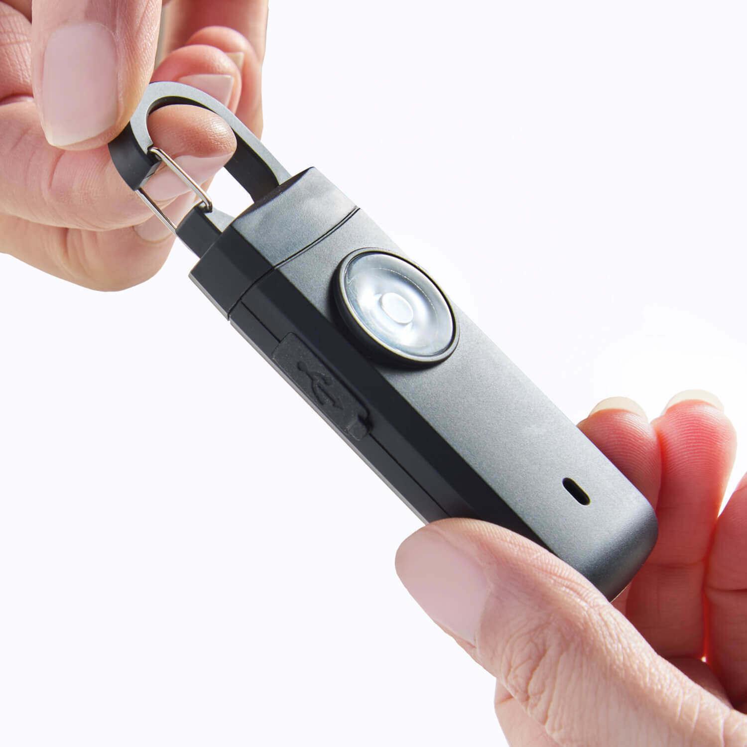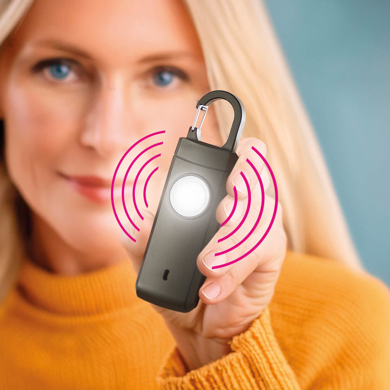 Pre všetky prípady a naliehavé situácie: vreckový alarm na krúžku na kľúče s ohlušujúcou sirénou a blikajúcim svetlom LED, ktorý vystraší každého potenciálneho útočníka.Oslnivé LED svetlo. Dĺžka trvania alarmu až 60 min. Dobíjacie.