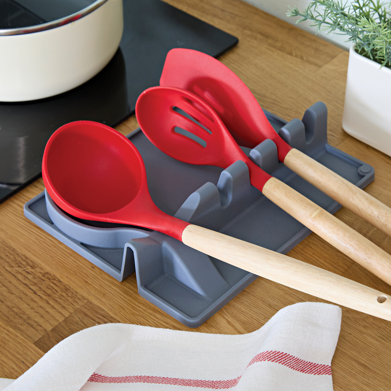 Na túto žiaruvzdornú odkladaciu pomôcku môžete umiestniť až 5 lyžíc alebo špachtľou. Zachytí odkvapkávajúce tekutiny a zvyšky jedál a udrží Vašu pracovnú dosku čistú. Hygienická + neporézna. Žiaruvzdorná do 260 °C. Basilico.