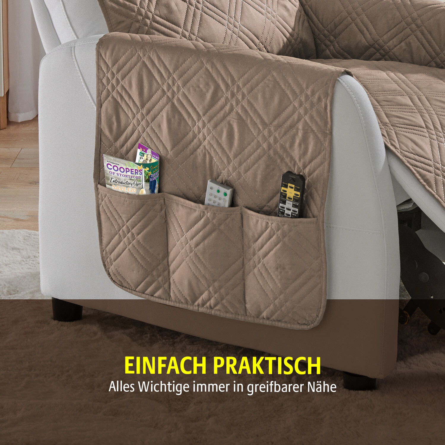 Lakťové opierky na čalúnenom nábytku sú obzvlášť náchylné na opotrebovanie. Napínacie poťahy s vrúbkovanou štruktúrou ich chránia pred znečistením, škvrnami a nevyhnutným oderom. Stačí ich jednoducho zakryť - hotovo!