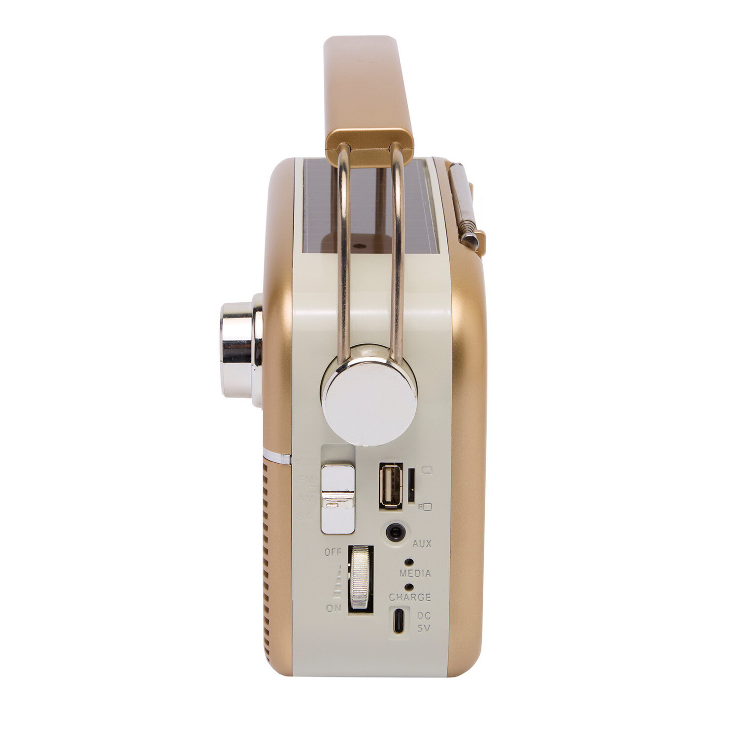 Štýl a technologický pokrok: toto solárne rádio kombinuje nostalgický tranzistorový retro vzhľad s modernou všestrannosťou. Prijíma stanice v pásme AM, FM a krátkych vĺn a prehráva hudbu prostredníctvom MP3, USB, TF karty alebo bluetooth. Vďaka integrovanému solárnemu panelu alebo priloženému nabíjaciemu káblu je vždy pripravené na použitie - bez batérií.