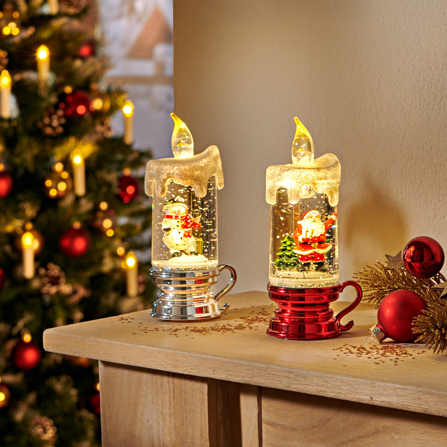 Svietiace LED sviečky s dúhovou hrou svetla a víriacim trblietavým snehom - skvelý efekt!