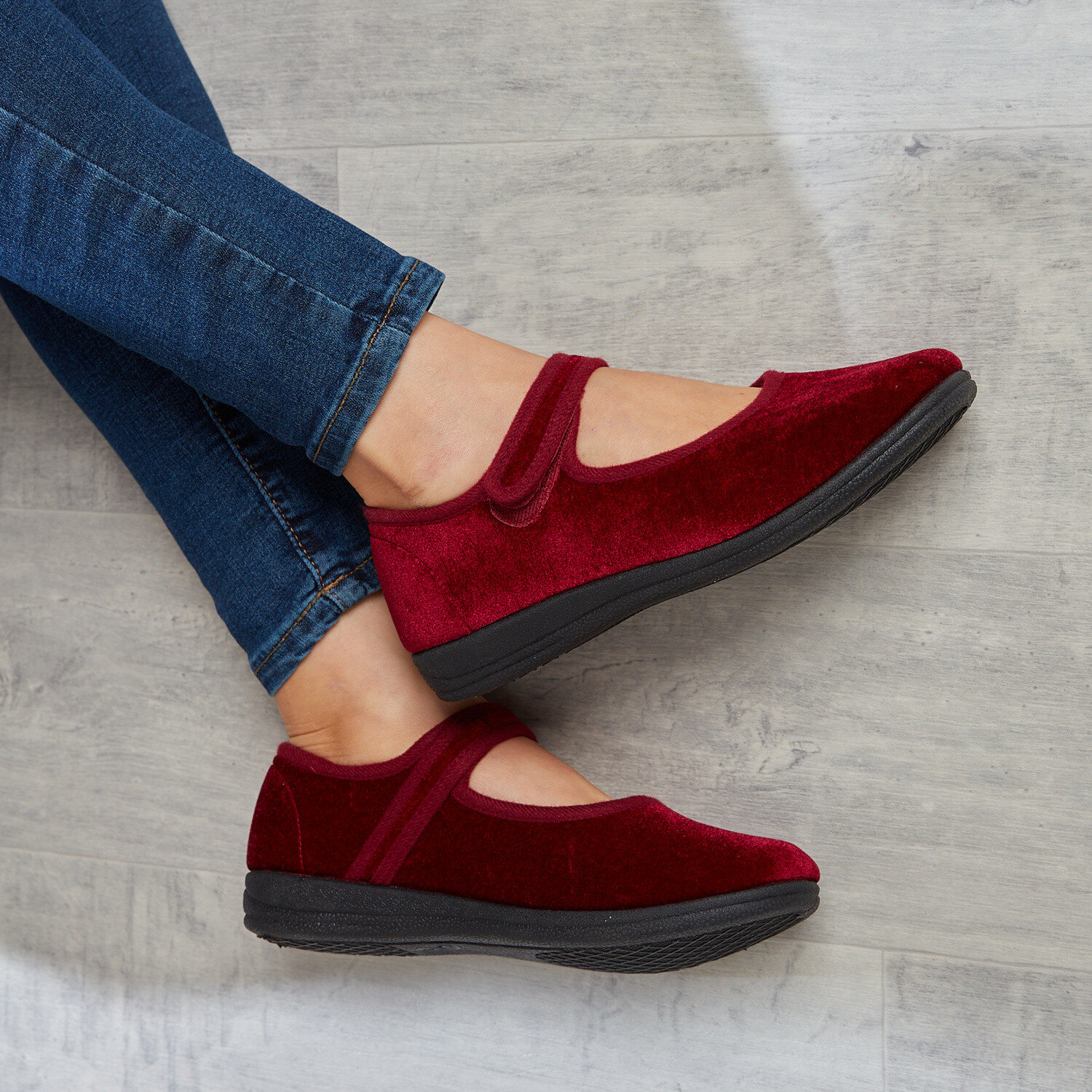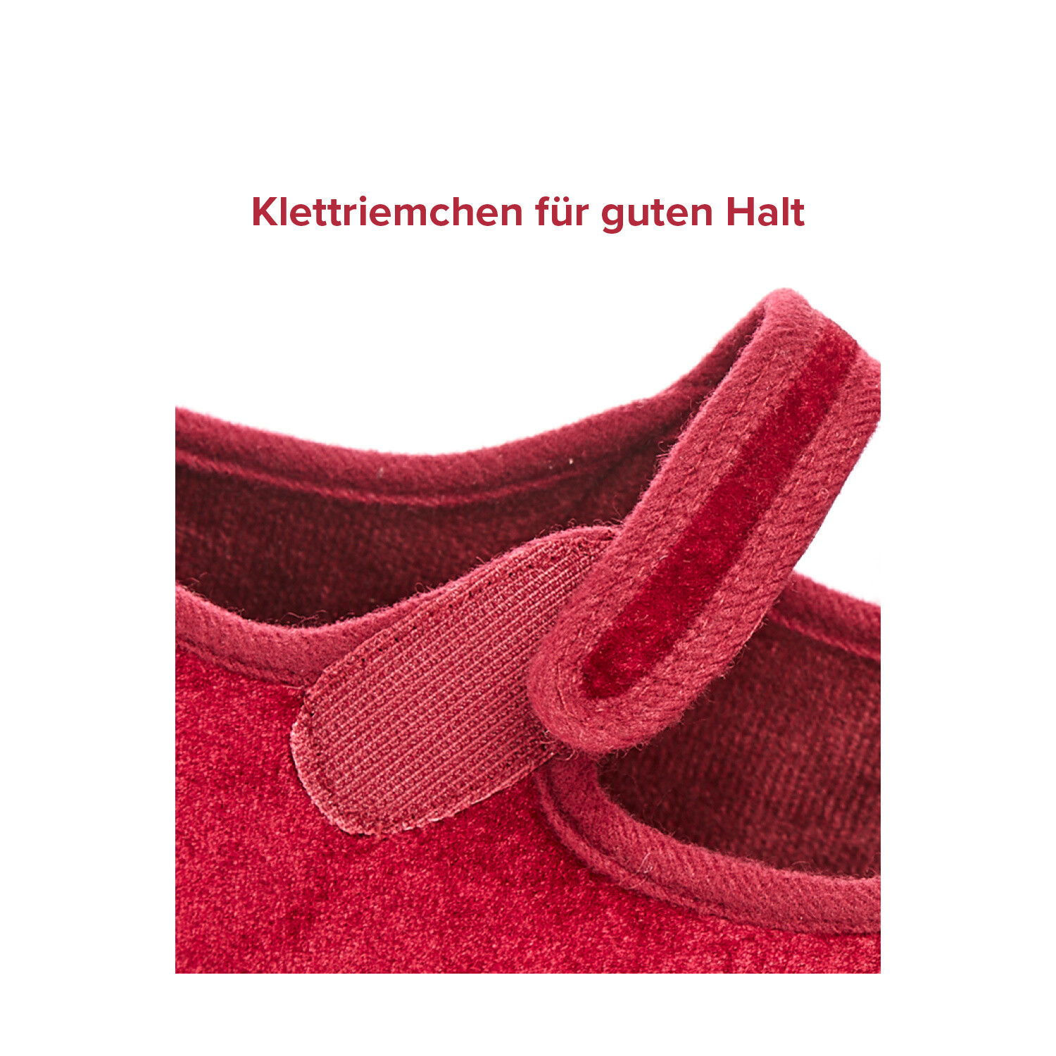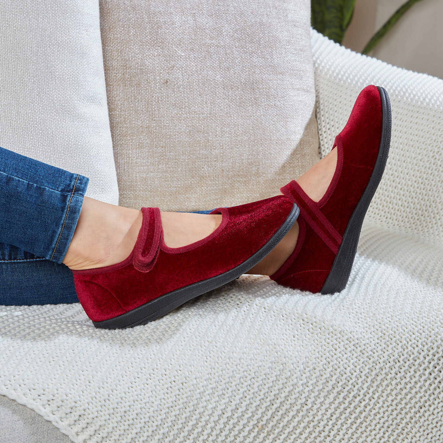Zamat dodáva elegantný nádych tejto domácej obuvi v štýle balerínok. Pohodlný strih s pružným pásikom na suchý zips zaisťuje komfort, ľahkosť a štýl.
